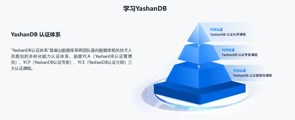 在认证端,深算院面向全社会推出YCA(数据库管理员)、YCP(数据库专家)、YCE(数据库大师)三大认证课程体系,针对不同层次学习需求,提供由浅入深的教学内容。同时,深算院还积极推进该认证体系融入高校教学,与深圳大学、天津大学、国防科技大学等20多所高校达成战略合作,累计培养学生超2000名,为行业的创新发展提供有力支撑。